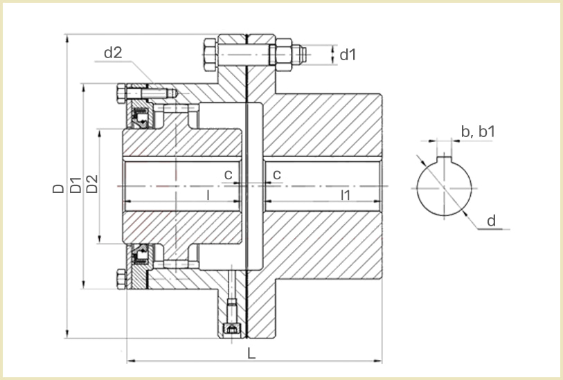 | № муфты | d не более | D | D1 | D2 | L | l | c | d1 | d2 | Вес, кг |