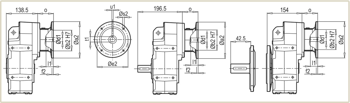 Присоединительные размеры мотор-редукторов D/M-603 подходят для агрегатации с электродвигателями европейского стандарта DIN и двигателей АИР изготовленных по ГОСТ. Для подбора электрического двигателя – ознакомьтесь с таблицей присоединительных размеров фланцев.