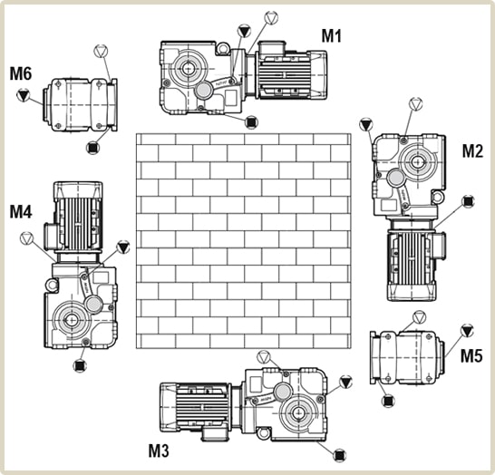 Монтажное исполнение мотор-редукторов с конической передачей