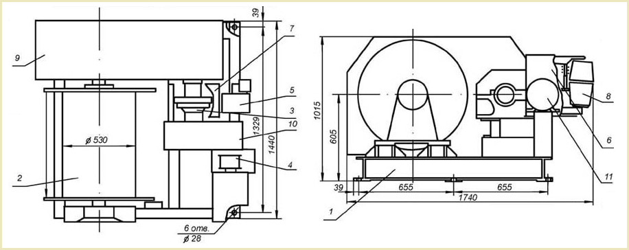 - Барабан для намотки троса;