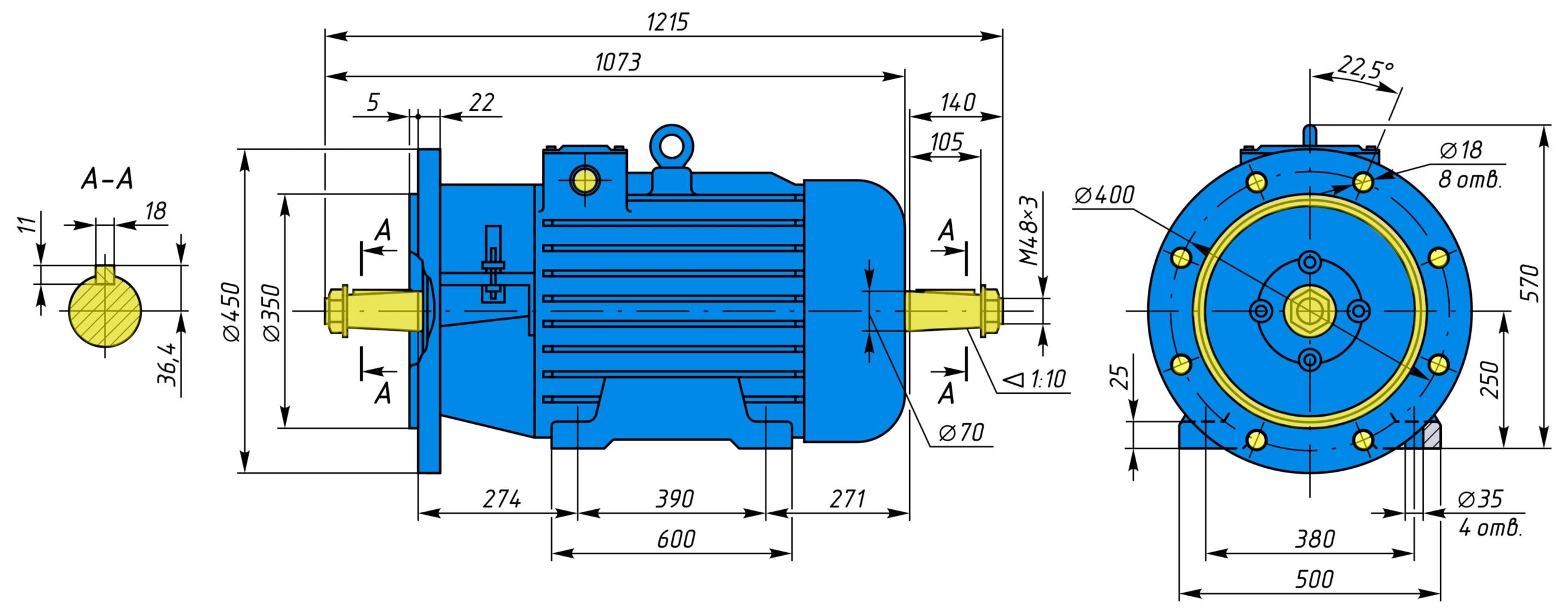 На кресленнях відображені габаритні, приєднувальні та установчі розміри електродвигуна MTH 512-6 55 кВт 955 оборотів у фланцевому виконанні та на лапах виробництва Сибелектромотор. Для перегляду креслення – натисніть на зображення.